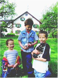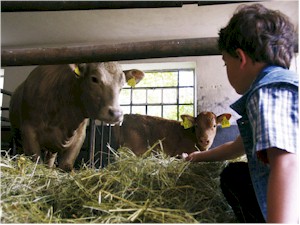 Der Bauernhof bietet neben zahlreichen Streicheltieren auch den direkten Einblick in einen Mutterkuhbetrieb. Hier kommen noch Kälber auf die Welt, die Anschließend bei der Kuh verbleiben dürfen!